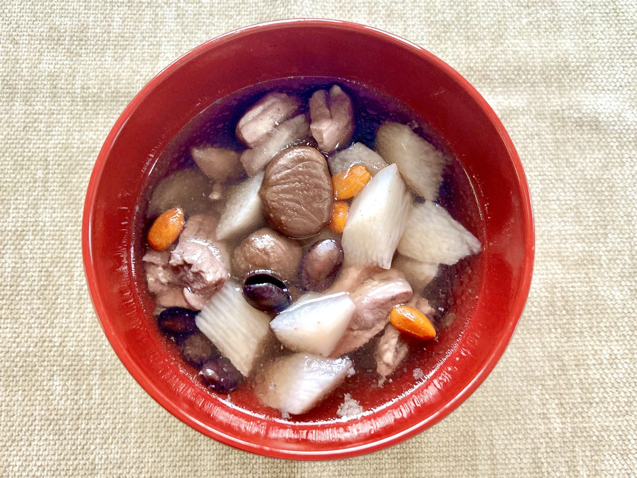⑤ 長芋、クコの実、生姜を加え、さらに10~15分煮ます。